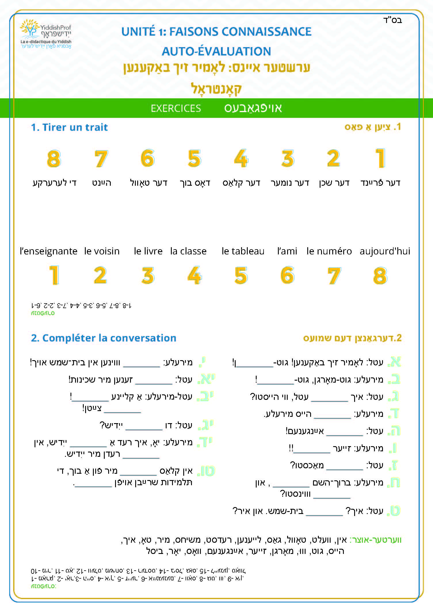 | Bonjour ( en réponse ) | גוט־מאָרגן - גוט־יאָר ! |